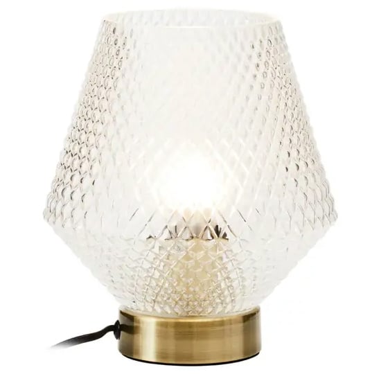 Introducing the Nelson Clear Glass Shade Table Lamp with Gold Metal Base, a captivating fusion of style and functionality from Furniture in Fashion. Elevate your interior with this exquisite table lamp that seamlessly blends modern aesthetics and practicality, offering both form and illumination. Experience the timeless allure of the Nelson Table Lamp, featuring a sleek Clear Glass shade that diffuses light softly, creating a serene ambiance. The lamp’s Gold Metal Base adds a touch of opulence and sophistication to any room. Meticulously designed with meticulous attention to detail, the Nelson Clear Glass Shade Table Lamp ensures durability and longevity through its high-quality construction. The sleek design effortlessly complements various interior aesthetics, making it a versatile addition to your living space, bedroom, or office. Whether you’re enhancing your workspace or adding a touch of elegance to your decor, the Nelson Clear Glass Shade Table Lamp with Gold Metal Base offers the perfect blend of style and illumination. Immerse yourself in Furniture in Fashion’s commitment to excellence in design, and create an ambiance that resonates with your refined taste. Upgrade your interior decor with the Nelson Clear Glass Shade Table Lamp, where modern design meets elegance and aesthetics meet practicality. Redefine your space with a lamp that captures the essence of contemporary living, and make a statement that reflects your discerning taste. FEATURES : Material : 85% Glass, 10% Iron, 5% Plastic Finish : Clear, Gold Clear glass body Tactile texture Angular aesthetic Gold finish metal base Contemporary Available at an affordable price Images shown are for illustration purpose only DIMENSIONS : Height : 23cm Width : 21cm Depth : 21cm